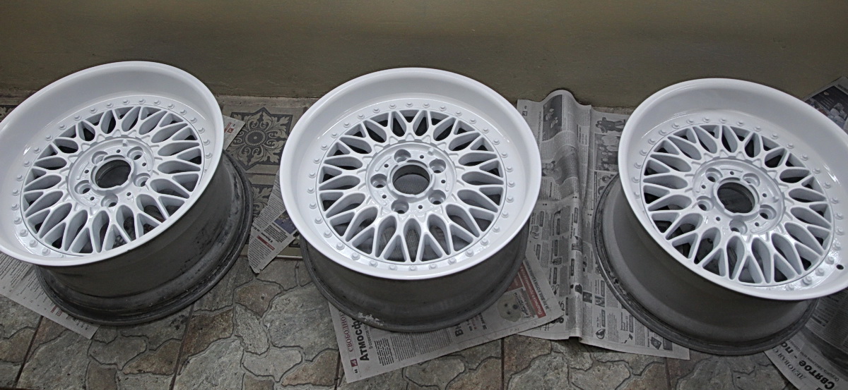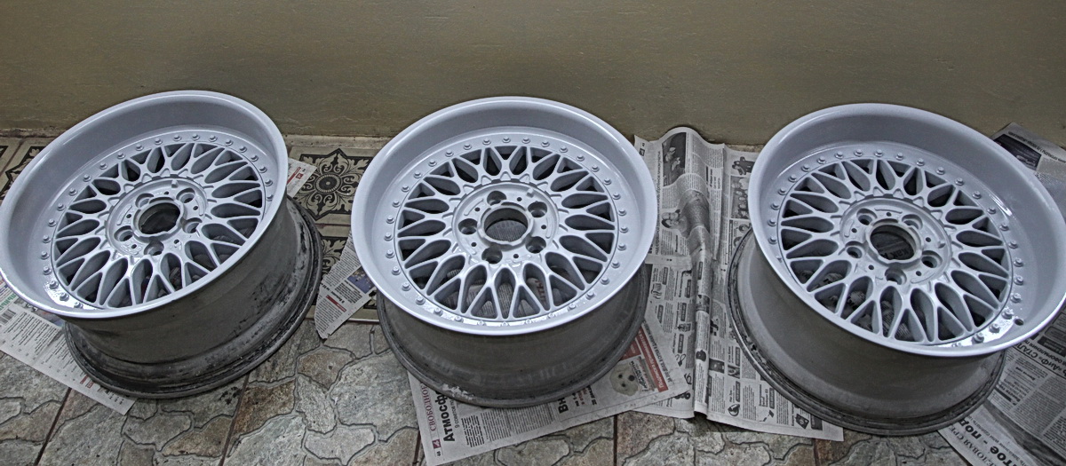 Ну и, наконец, окончательная покраска дисков базовой эмалью и лаком.