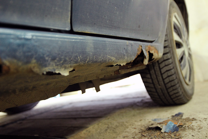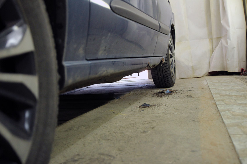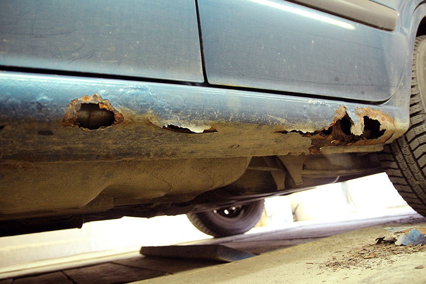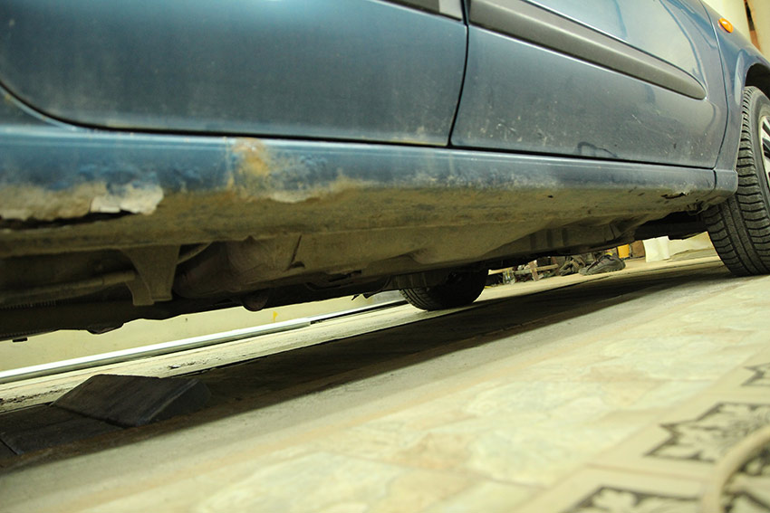 Место соединения всех трех элементов (порога, усилителя и днища) тщательно очищается от коррозии, несколько раз обрабатывается преобразователем ржавчины.
