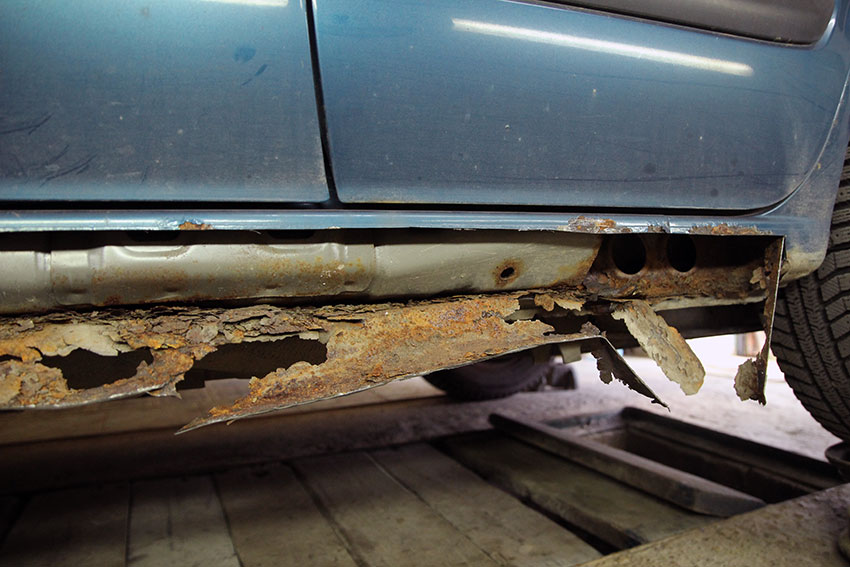 Для человека, имеющего отдаленное понятие об устройстве кузова автомобиля, все может выглядеть ужасающе, но, в данном конкретном случае, ситуация совсем не плохая. Прежде всего потому, что от разрушительной коррозии пострадали главным образом сами пороги и их усилители в нижней части.